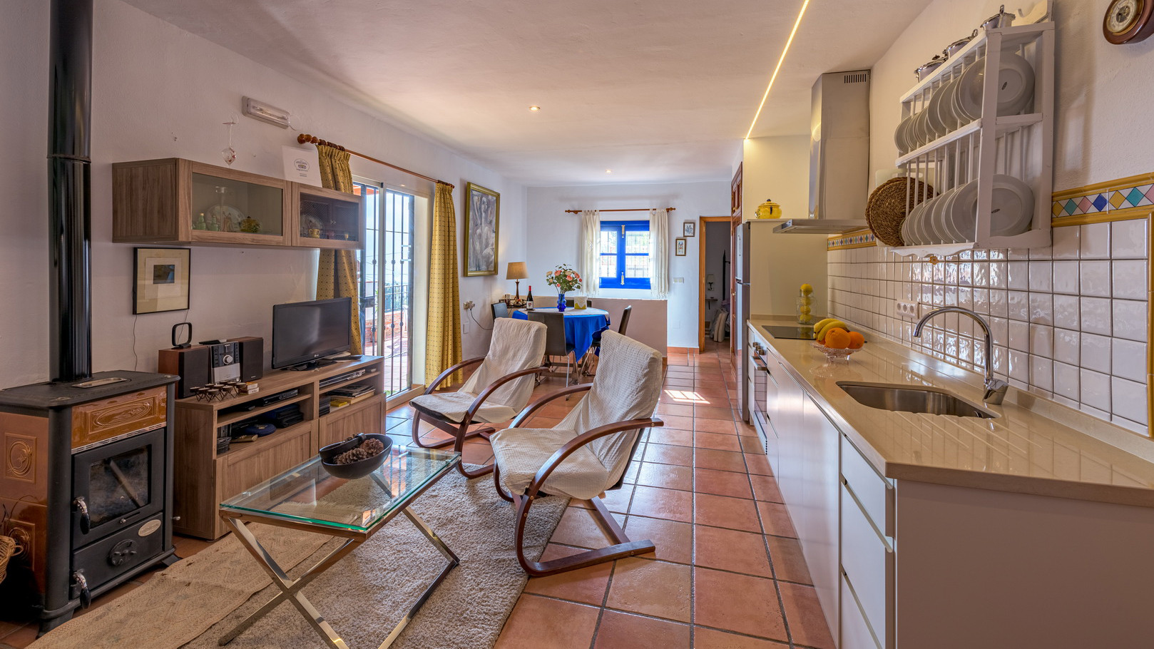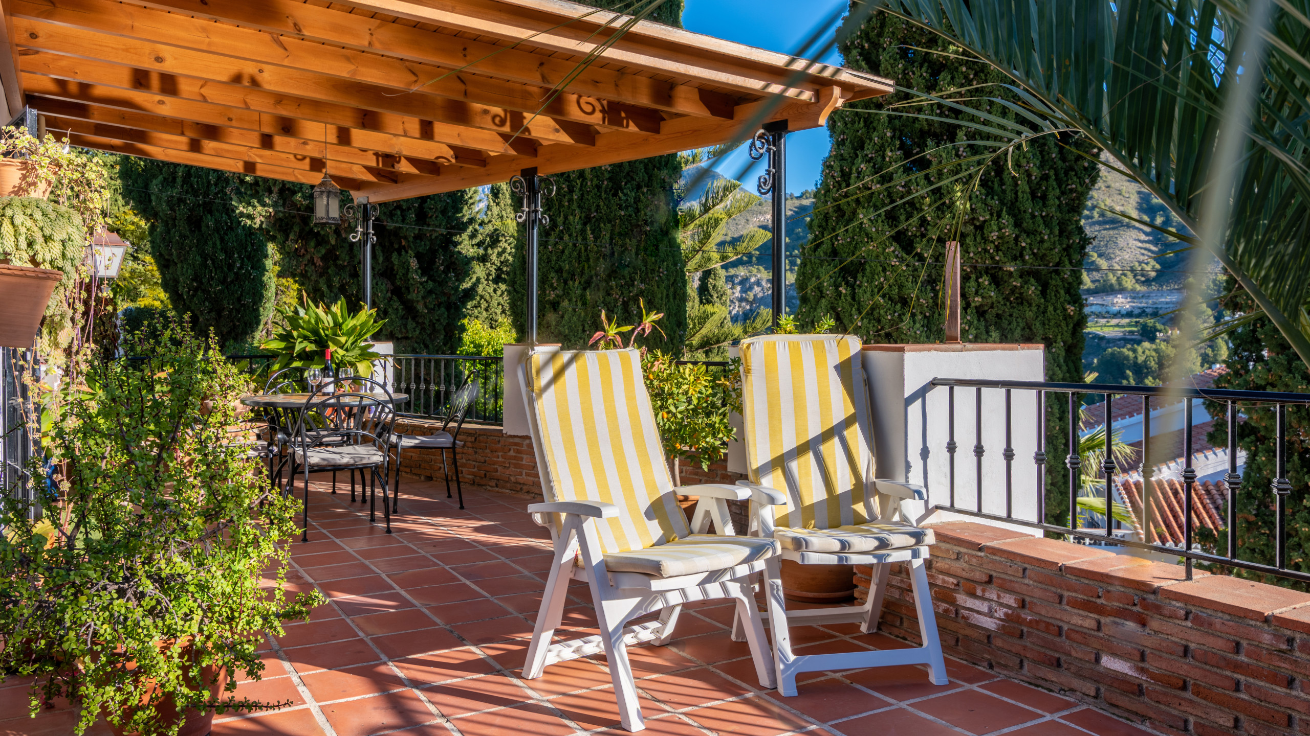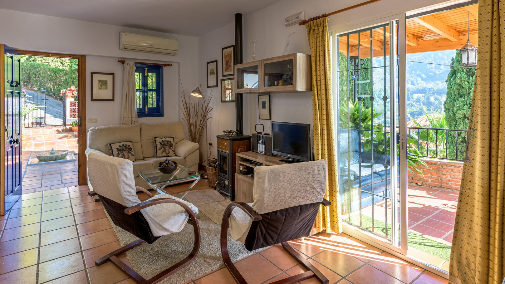 Here you will get the best of both worlds: the slow pace of the Andalusian countryside while urban life is never far away. The cottage is located in the Imaroga area, at a short distance from Nerja (3 km) and Frigiliana (3 km). The famous Burriana beach is just a 10 minute drive away. The outside area has a spacious sun terrace next to the private pool with 4 sun loungers. You will also spend a lot of time on the terrace, a very suitable place for your barbecue dinners; it is fully equipped with patio furniture. The view to the avocado fields with Nerja and the surrounding hills as a backdrop is stunning. On the first floor, a lovely sun terrace lets you see the Mediterranean.