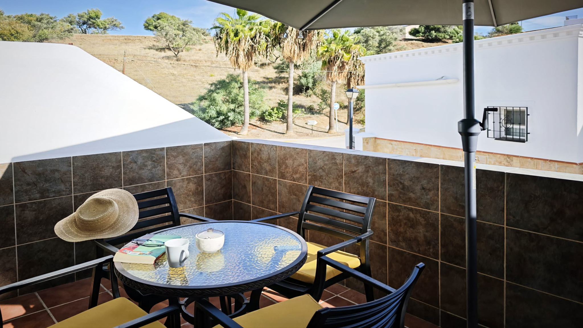 The house is spread over two main floors plus a spacious rooftop terrace and offers three terraces in total, perfect for enjoying the sun and the Mediterranean climate. On the ground floor there is a fully equipped independent kitchen, a bright living room with sofa, dining table, TV and direct access to one of the terraces, as well as a guest toilet. On the first floor there are two bedrooms: one with a double bed and air conditioning, and another with two single beds. They share a complete bathroom with bath, shower, sink and toilet. From this floor, there is access to another terrace with lovely countryside views.