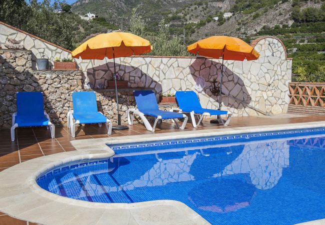 The cottage has a large pool (4x7.5 m long and 1x1.5 m deep) with a lawn area and a pretty sun terrace—sun loungers are provided for sun bathing and relaxing. The accommodation is also ideally located for exploring the impressive Moorish heritage of the Andalucian cities of Granada, Sevilla and Cordoba, amongst others. The town of Nerja and its beaches can be reached in 10 minutes by car.