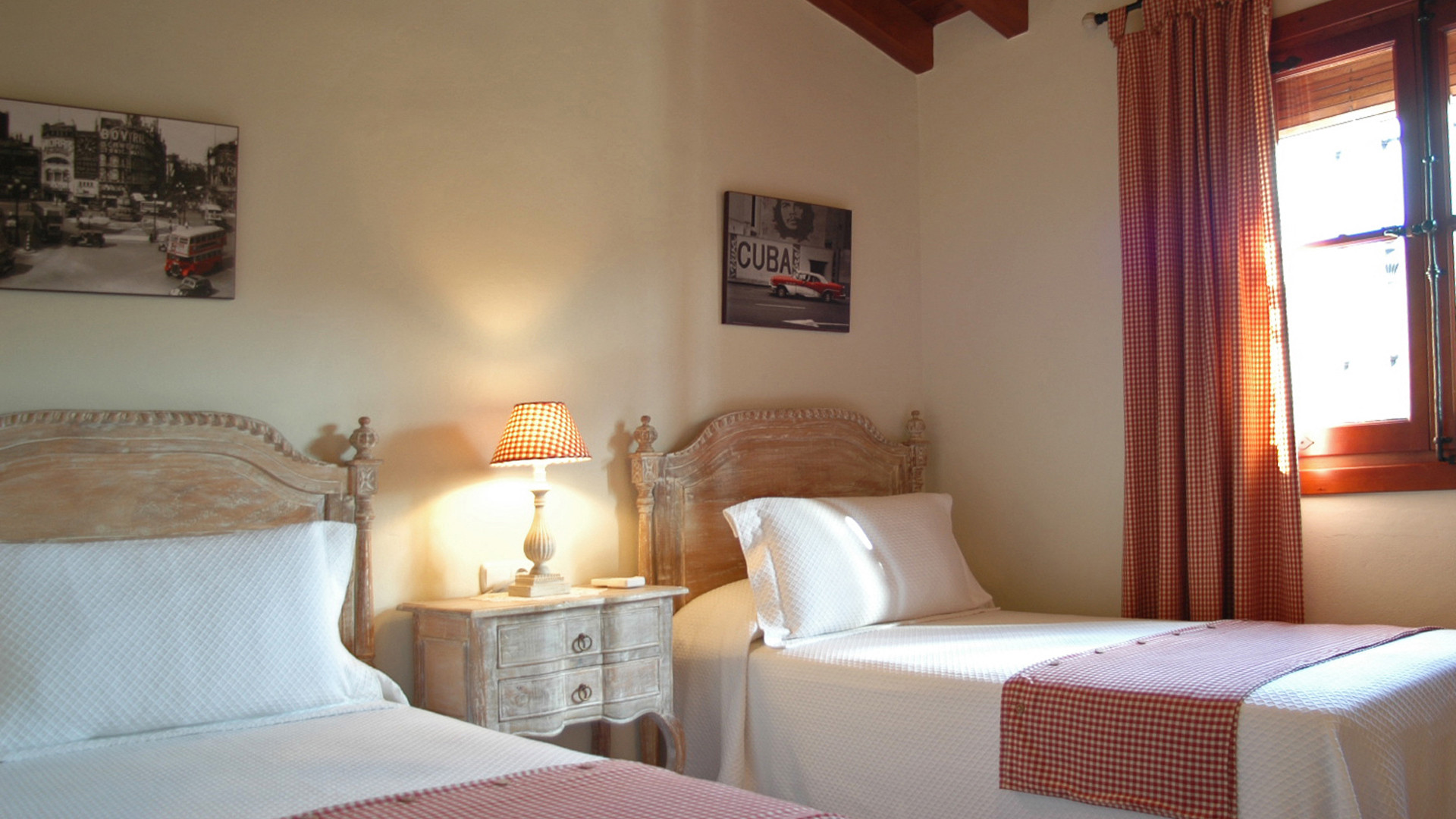 On the second floor there are two romantic twin bedrooms with wooden ceilings and plenty of wardrobe space. The family bathroom on this floor is equipped with whirlpool bath, WC, and wash basin.