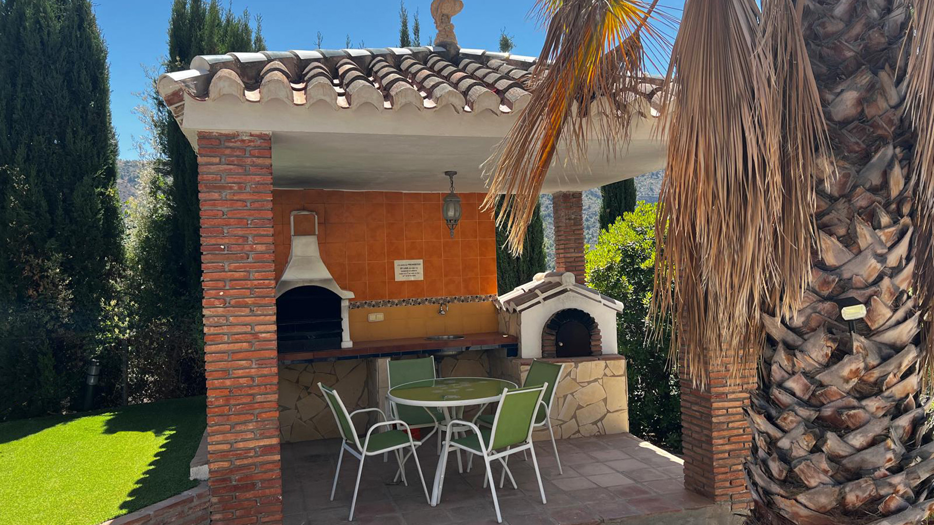 Situated in peaceful surroundings, this charming two storey villa is set in a walled garden within a short drive from Burriana beach (2 km) and Nerja's shops and restaurants (2 km). The delightful, garden with lawn features a sun terrace with a swimming pool (8x4 m; 1,10 - 1,80 m deep). A pleasant dining corner with barbecue kitchen and furniture provides the ideal spot for your alfresco dinners. A few steps lead to the veranda of the house where you have another nice little terrace that with views out to Nerja and the Mediterranean. Just an hour from here, you'll be visiting Granada's Alhambra palace or the Málaga's Gibralfaro castle. If you don't mind driving, visit the beautiful inland cities such as Seville and Córdoba.