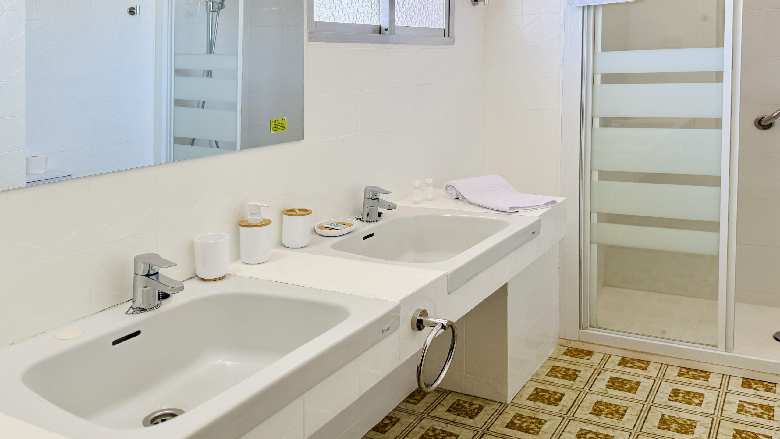 With 5 bedrooms for up to 9 guests (2 doubles, 2 twins, and 1 single), plus 1 full bathroom and 3 shower rooms, there is plenty of space for families or groups.